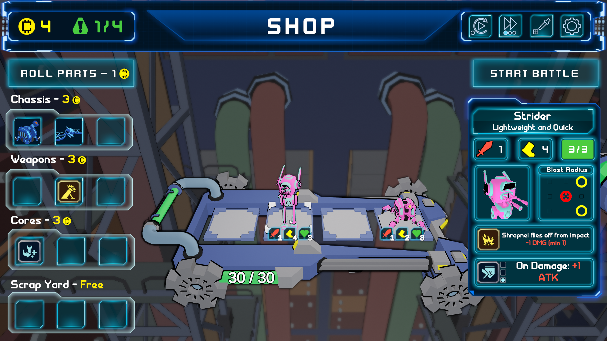 Factory Reset is a tactical, robot-building roguelite game made in Unity as a capstone project for MSU’s Game Design Minor. I served as the team’s Producer, Lead Designer, and Effect Engineer. This was one of my first leadership positions on medium-sized team and it provided me with valuable experience sprint planning, scoping, and people managing. Additionally, throughout development we met weekly with a team of professional game developers who acted as our clients and advisors.
